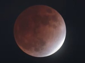 赤銅色のこんな色の月、色も形も刻々と変わる様を、