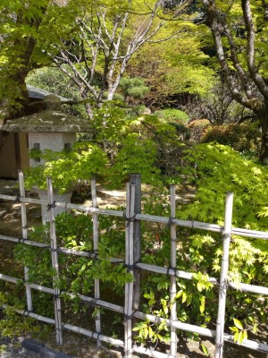 林泉庭の上に建つ勝山亭。