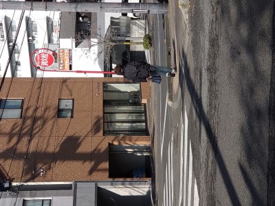 信号で停まって、消火栓標識の下の看板が目に入りました。