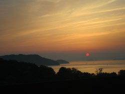瀬戸内海のキラキラの海と夕日。岡山城と後楽園。