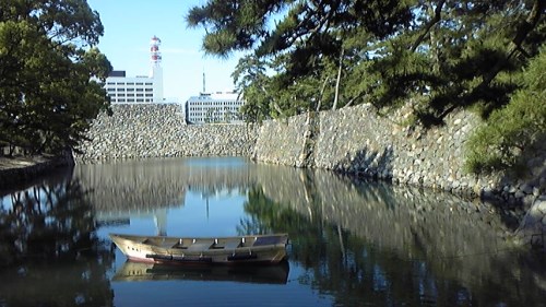 日本三大水城のひとつだそうです。堀や石垣、松が美しい公園です。