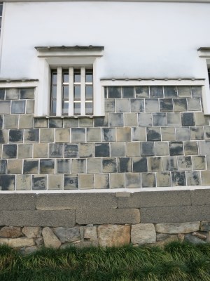 近くでみると、なんて微妙な色。黒、墨色、灰色、土色、・・・そして目地の白。