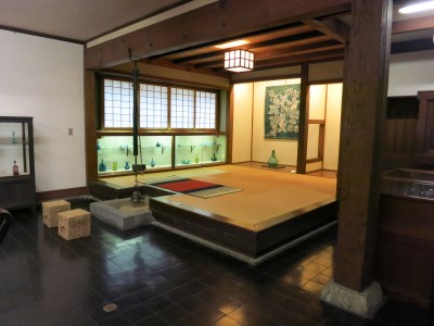 囲炉裏に敷き瓦の床。