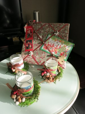 上 : リボンやフェルト、カードを加え、あたたかいクリスマスの演出。