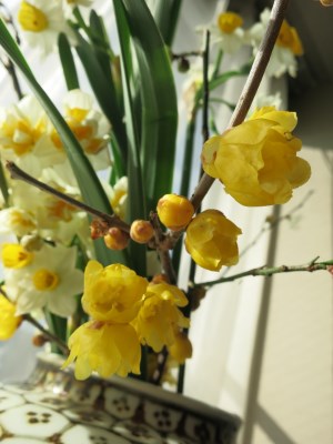 蝋梅と梅と水仙と・・・部屋いっぱいに優しい香り。