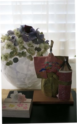 和紙のお雛様と、絵形香『桜重ね』と飾りました。
