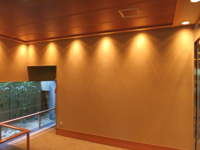 奥の壁にも同じくダウンライトの光の山です。