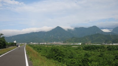 この景色は、重信川の土手の道です。