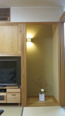 コンセントを壁付けの器具で、床の間風に。