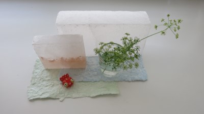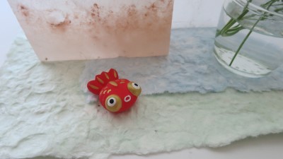 和紙、岩塩、パセリと金魚。