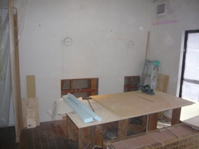 壁にはブラケットの位置に配線出てきています。