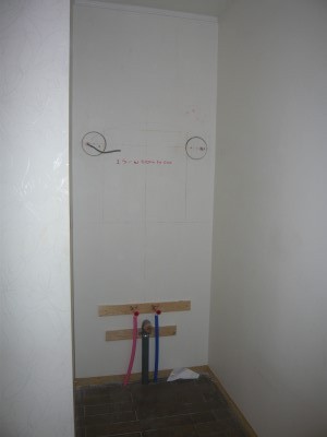 洗顔コーナーの給排水工事。ミラー位置も問題なしです。
