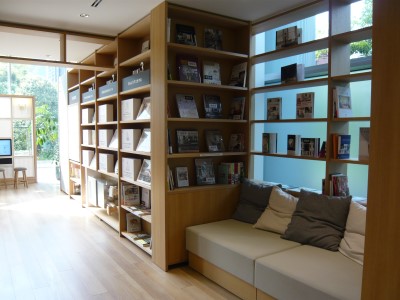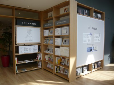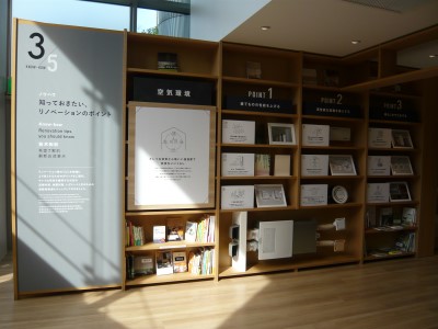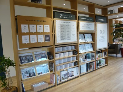 途中にはちょっと座ってカタログを見たり、関連の書籍・参考書を読めるコーナーも。