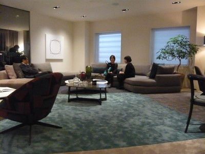 アルフレックスの新作展示会。たくさんのインテリア関連のプロが会場に。