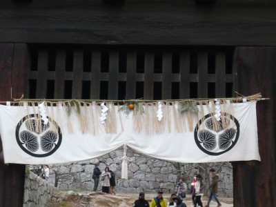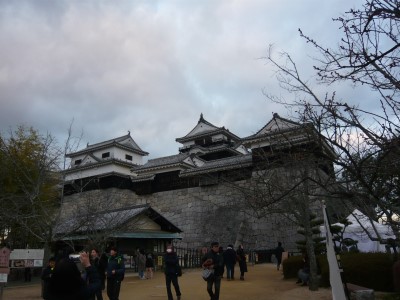 元旦に初日の出が見えるかなと松山城に。