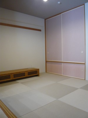 和室は、畳は灰桜色の縁なし。市松模様。素材は紙です。