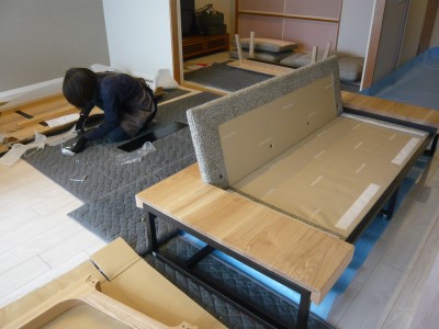 納品の日。次々搬入、 梱包から出し、組み立てられていきます。