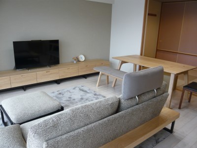 お手持ちの家具を、仮に置いて、新しい家具の仕上がりを1カ月半お待ちいただきました。