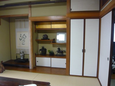 確認にうかがえば、また玄関正面は素敵なしつらえ。