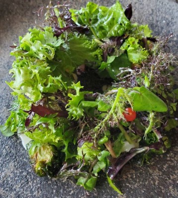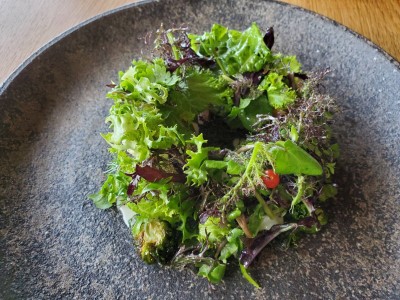 ベビーリーフの下には、太刀魚のフリッターなど。