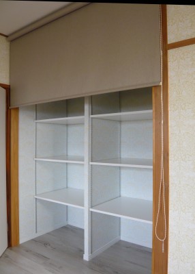 押し入れもクロスを貼ってロールスクリーンですっきりと。