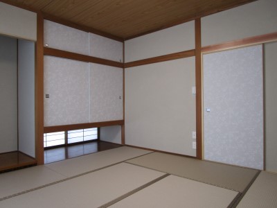 襖も貼り換え、穏やかな色の萩の模様の襖紙に貼り換え。