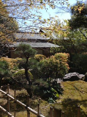 林泉庭の上に建つ勝山亭。