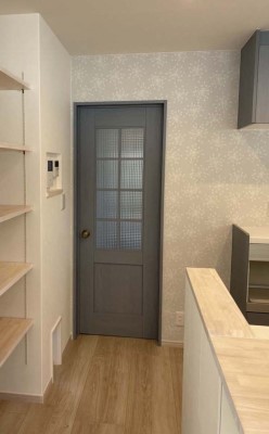 この造作カウンターシンクのため、隣のクローゼットとの壁を少しだけずらしていただきました。