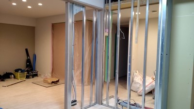 間接照明用のL字の造作が取り付けられ、だんだんと形になっていきます。