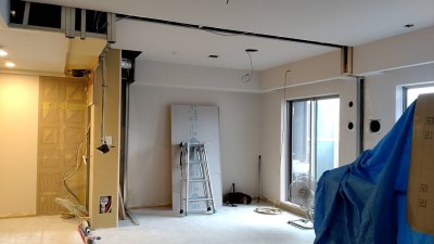 キッチン前の壁も撤去され、