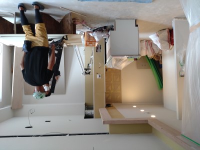 一旦撤去されたキッチンが元の位置に仮置きされました。