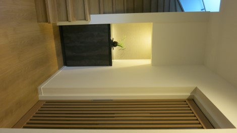 玄関ホール正面の建具を撤去し、フォーカルポイントの床の間をしつらえました。