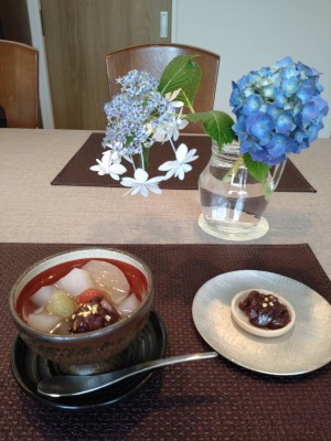 T様は、小さな飾る場に、涼やかな演出でお迎えくださいました。