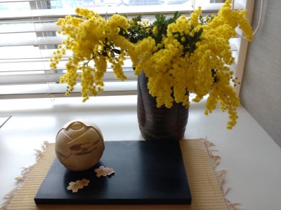 春を呼び込むミモザを、感謝の気持ちで飾ります。