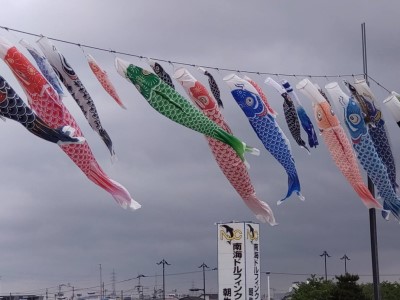 鯉のぼり・・・通っているスポーツジムにも元気よく空を泳いでいます。