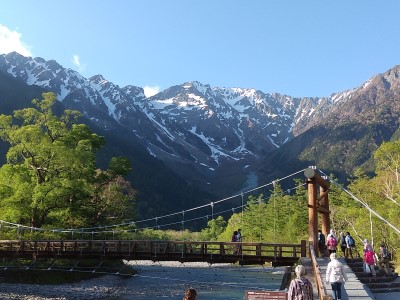 上高地、雪の残る山、川の流れ、鳥の声・・・心は憧れます。