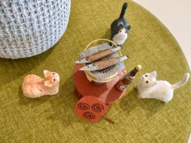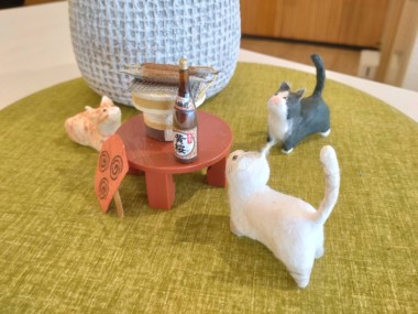 サンマが焼けるのを、狙って構えている猫3匹。