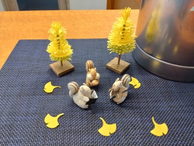 イチョウが少し黄色くなって、木々の葉も色づき始め・・・