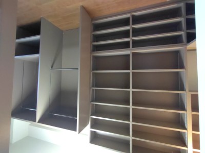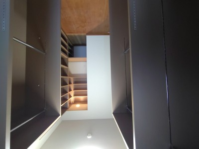書斎のたくさんの書籍のための棚はパソコンカウンター上部にも。