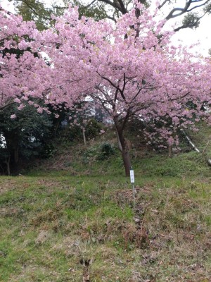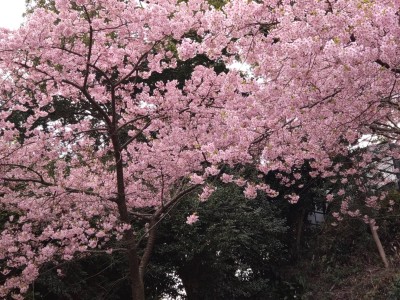 ほぼ満開の河津桜。