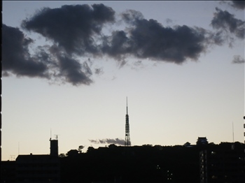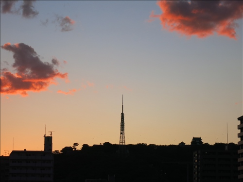 夕暮れから夜になるまでの時間の、空と雲と、松山城のシルエット、見とれるくらい綺麗です。