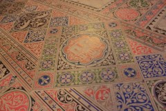 床のタイルは、端の振り減ってないところが当時の色合いを残し、とても鮮やかです。