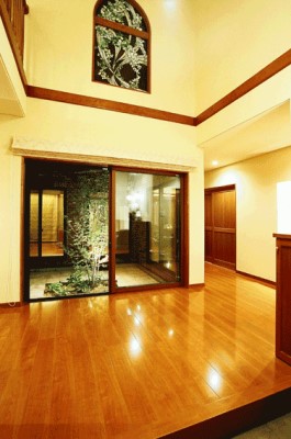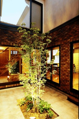 作品をインテリアとして生かせるように、中庭や吹き抜けを計画。降り注ぐ光を確保しました。