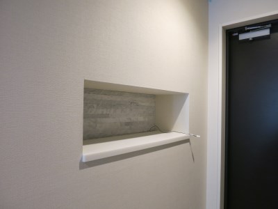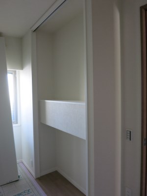 玄関のニッチをへこませた分、ご寝室のクローゼットの中棚形状が出来ました。