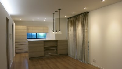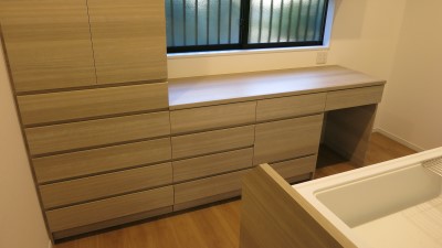 平面計画、インテリアトータルデザイン(洗面などの水廻り設備、キッチン、トイレ、照明、内装仕上げ、カーテンなどの窓装飾、収納、家具配置、特注造作家具、お手持ち家具のクッション選び、SW・コンセント)、外構イメージ……など、1年と少し、お打合せいただき完成しました。